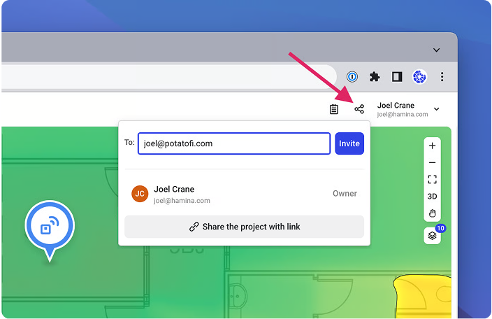 Click Share (top right), then choose ‘Share the project with link’ to generate your password-protected link.